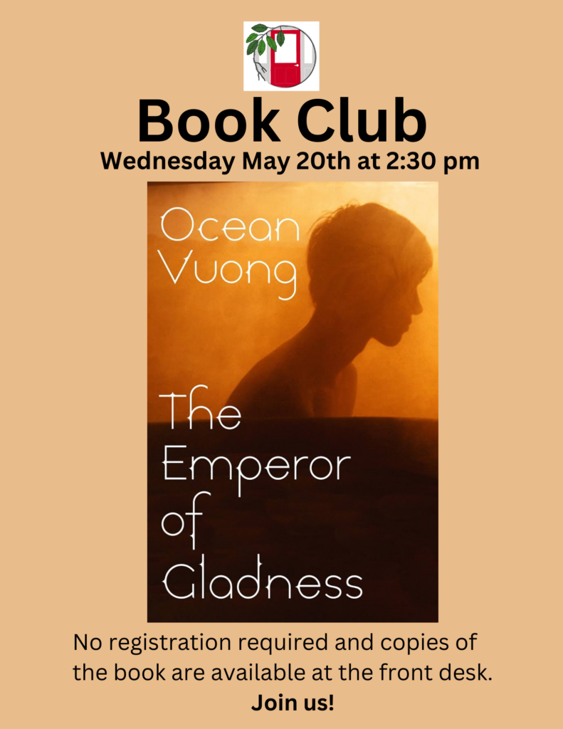 The Hull Library Book Group meets on the 3rd Wednesday of the month at 2:30 pm on the second floor of the Library. If you are interested in joining, please contact the volunteer moderator, Judy Fanuele, at fanvill4@aol.com. For more information on the book go to The Events Calendar at hullpubliclibrary.org https://www.hullpubliclibrary.org/adult-calendar/ and click on the date of the next book club meeting.